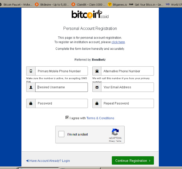 penjualan / pembelian bitcoin. Untuk informasi lebih lanjut kalian bisa klik link coins.id di atas dan isi formulir pendaftaran seperti gambar di bawah